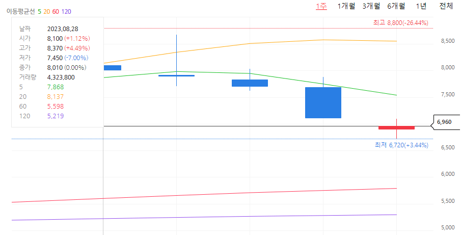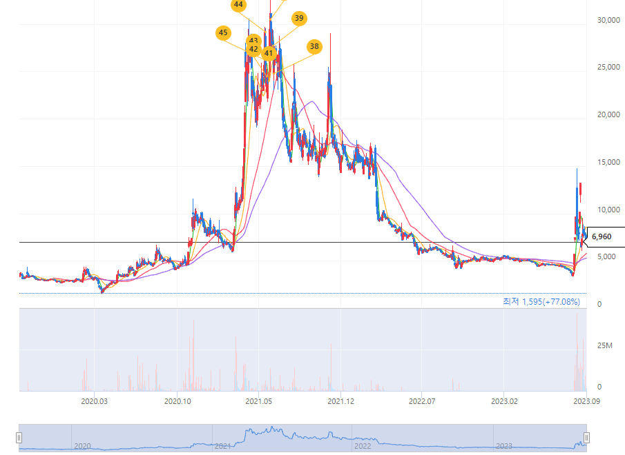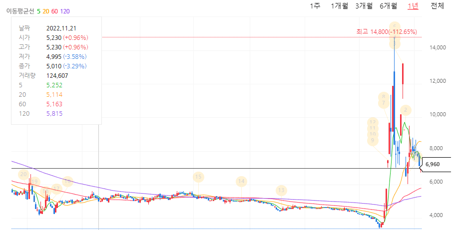 현재 다른 초도전체 관련주들에 비해서 어느 정도 주가 방어를 하고 있는 상황이며 상위 4개의 종목 중에서 대장주 역할을 하고 있습니다.