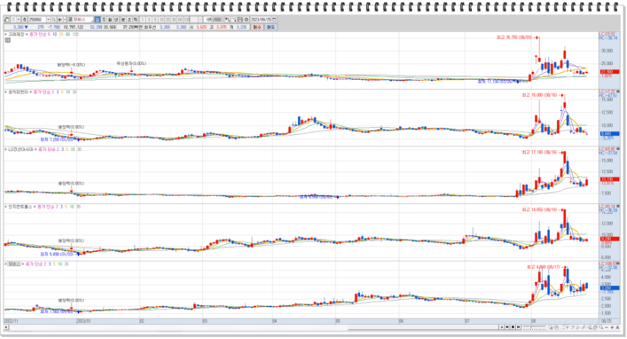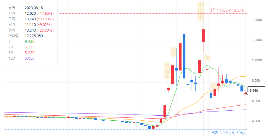 현재 다른 초도전체 관련주들에 비해서 어느 정도 주가 방어를 하고 있는 상황이며 상위 4개의 종목 중에서 대장주 역할을 하고 있습니다.
